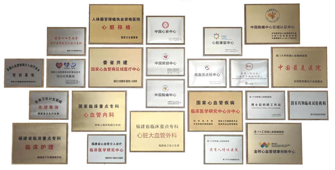 在国家公立医院绩效考核中,厦心连续获A级的最高评级 (其他专科手术组),其中CMI值连续四年位列全国“其他专科手术组”第2名,仅次于中国医学科学院阜外医院,2021年度患者满意度位列全省公立医院第一名,被列为公立医院高质量发展省级示范医院,已成为区域内最具影响力的疑难危重复杂心血管疾病诊疗中心。