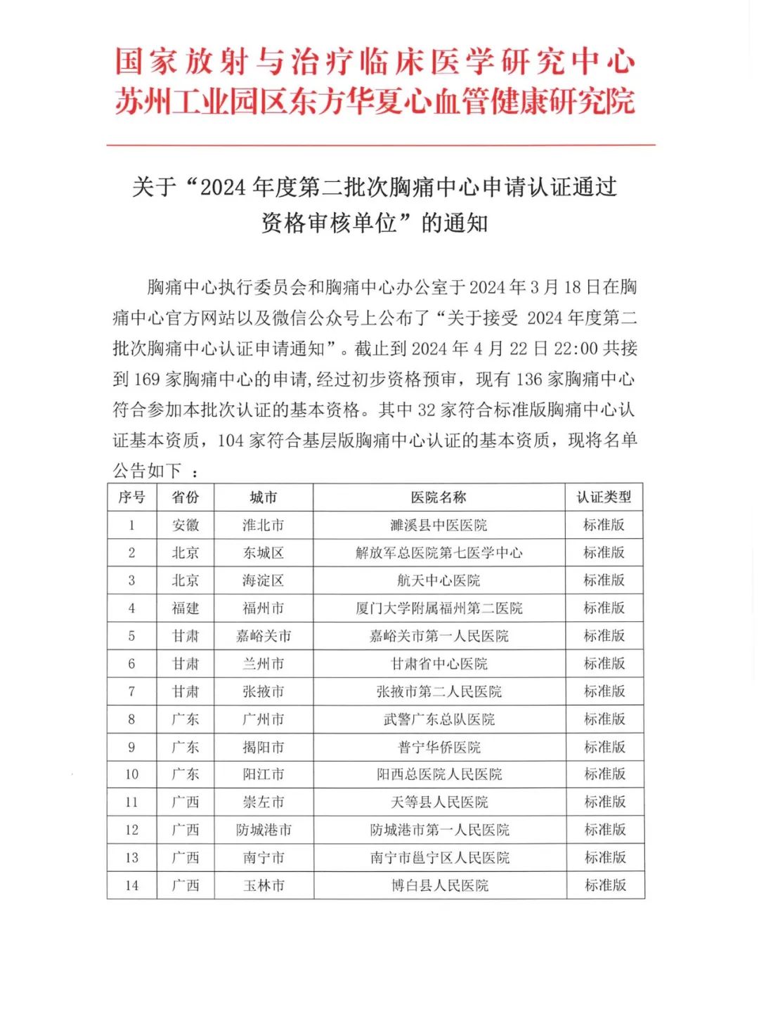 重要通知|关于“2024年度第二批次胸痛中心申请认证通过资格审核单位”的通知