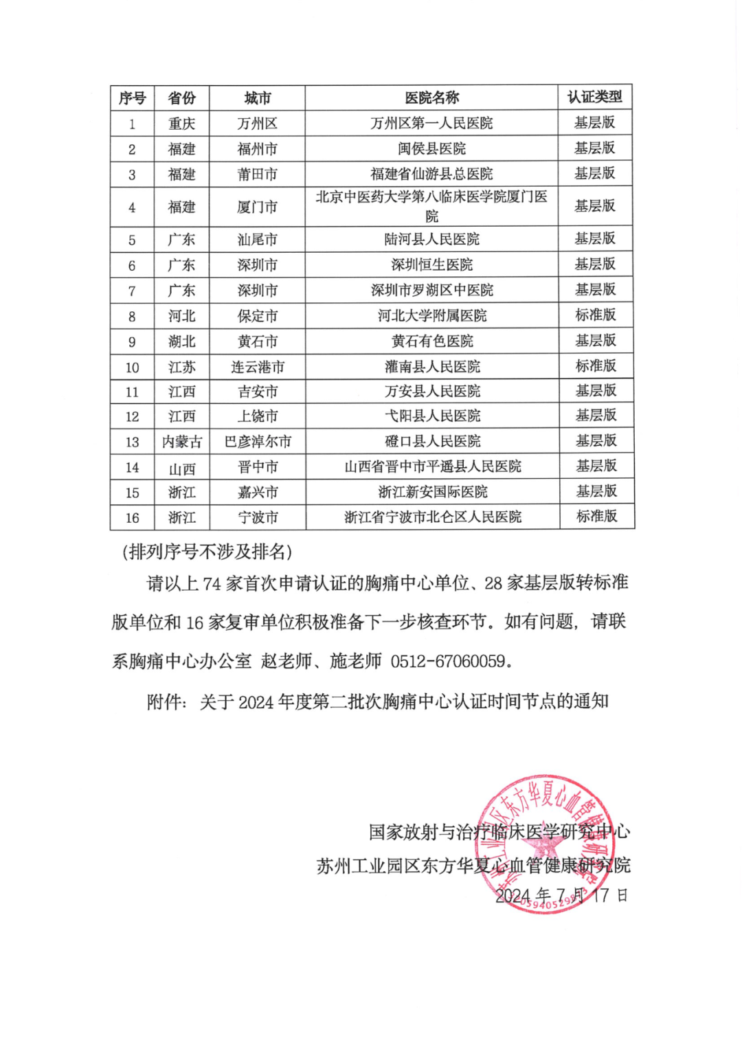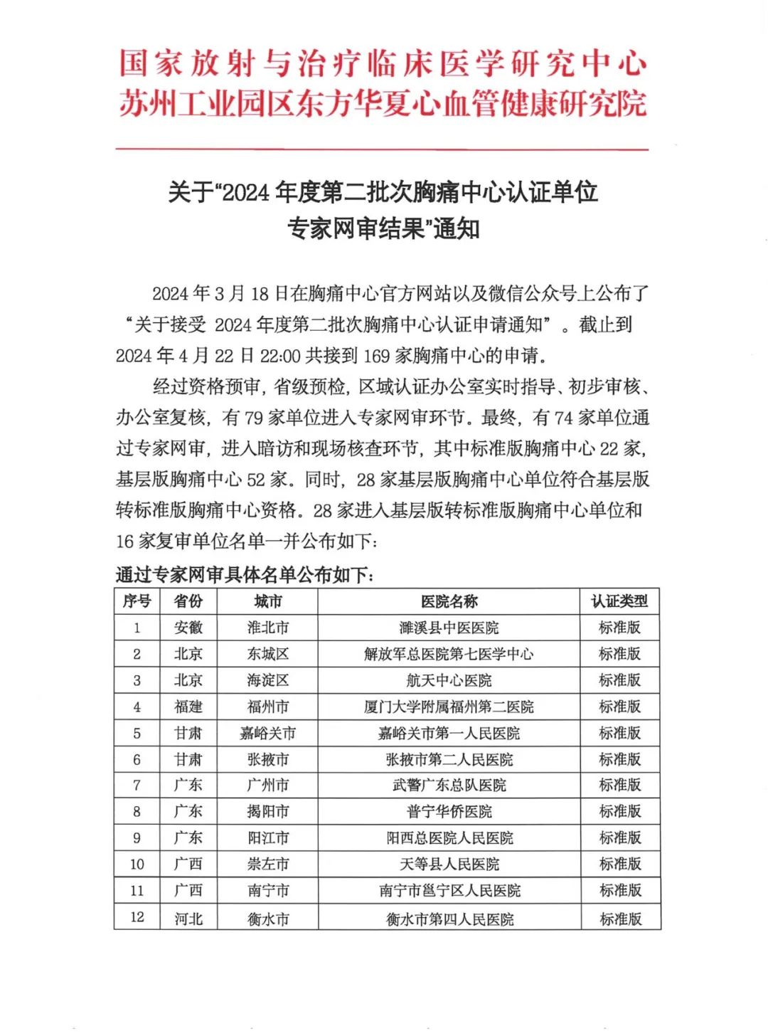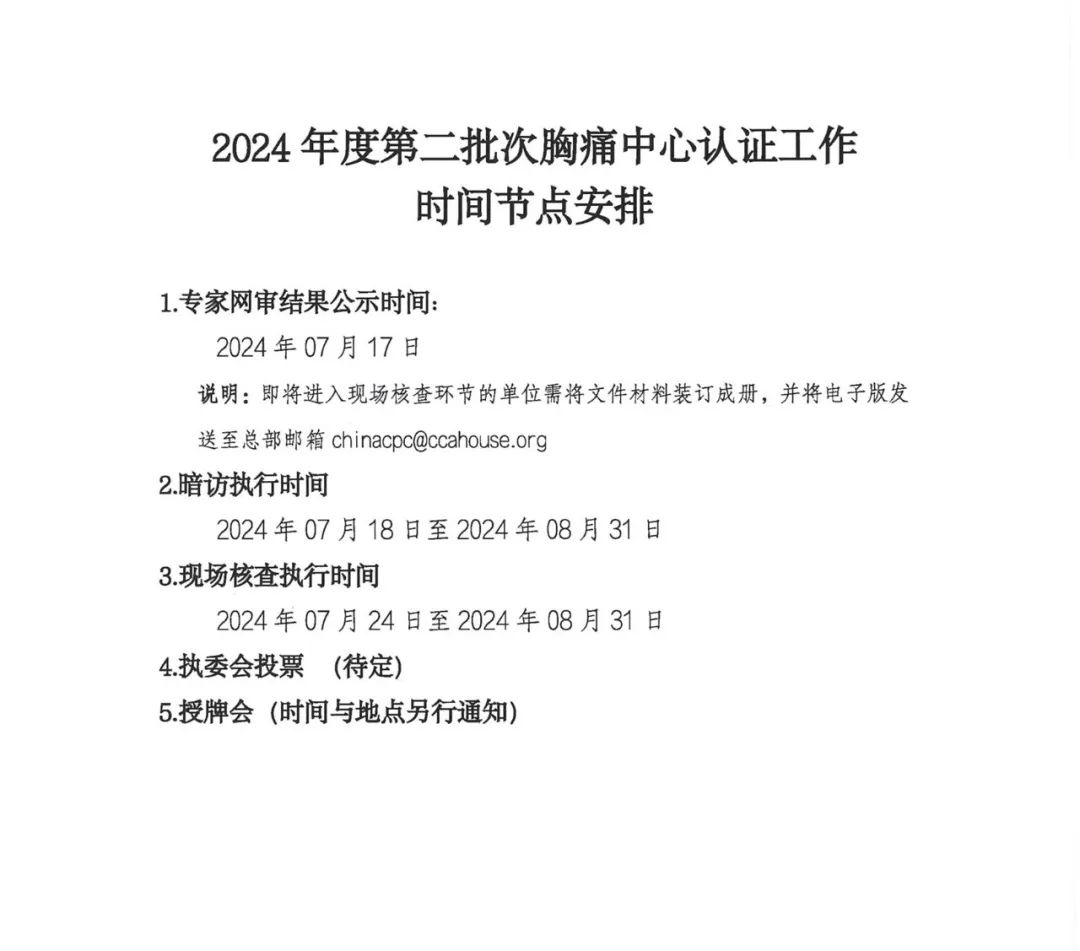 重要通知|关于2024年度第二批次胸痛中心申请认证单位专家网审结果通知