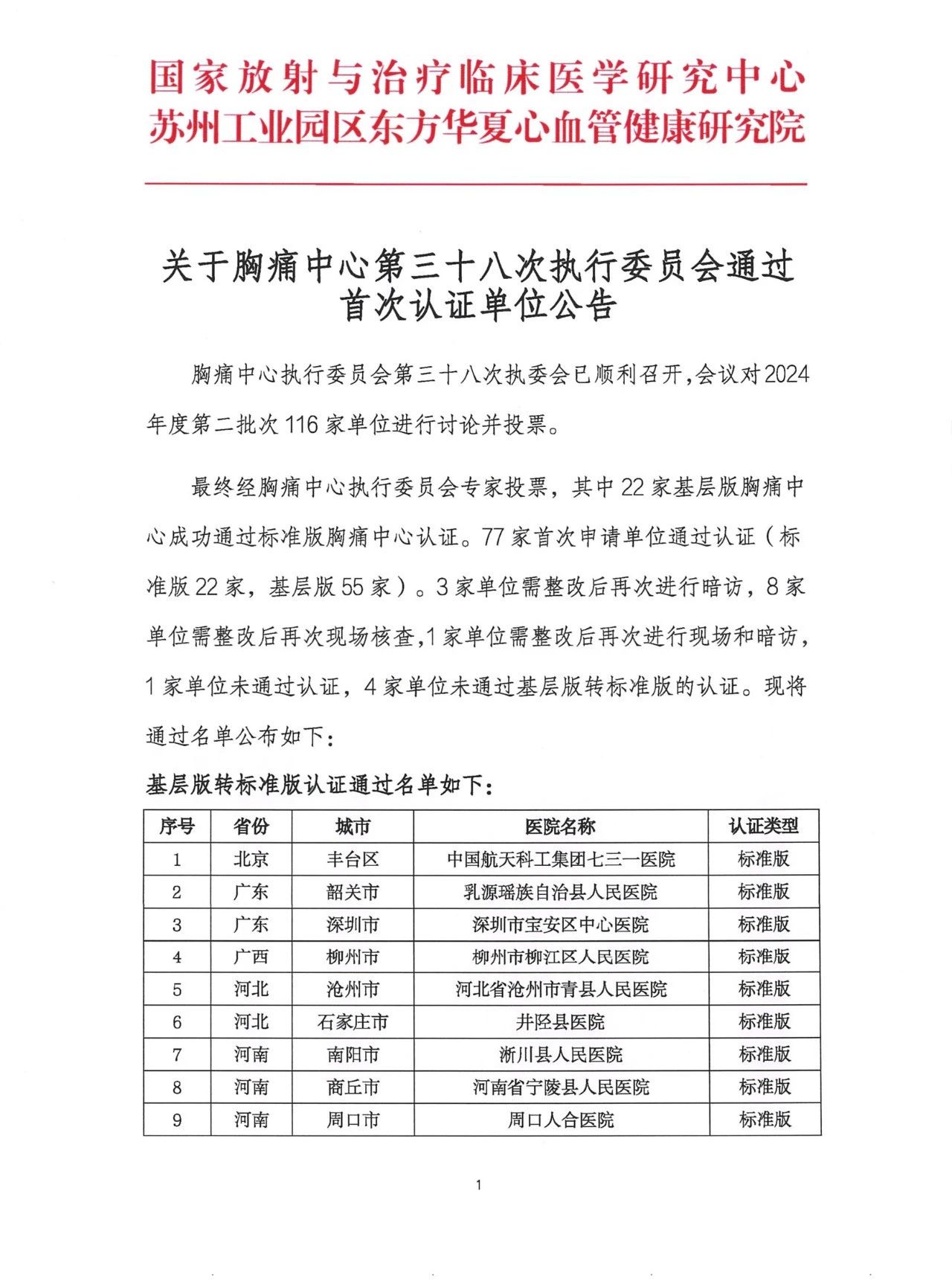 重要通知|关于胸痛中心第三十八次执行委员会通过首次认证单位公告