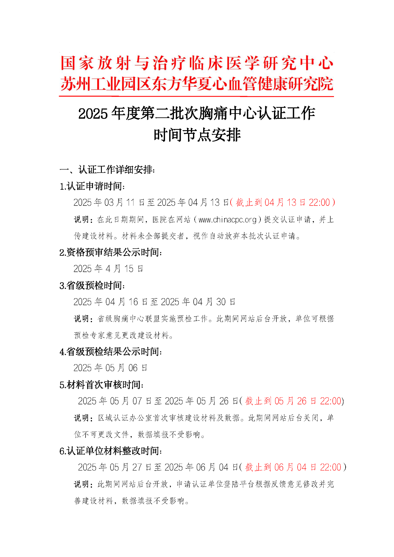 重要通知|2025年度第二批次胸痛中心认证工作时间节点安排