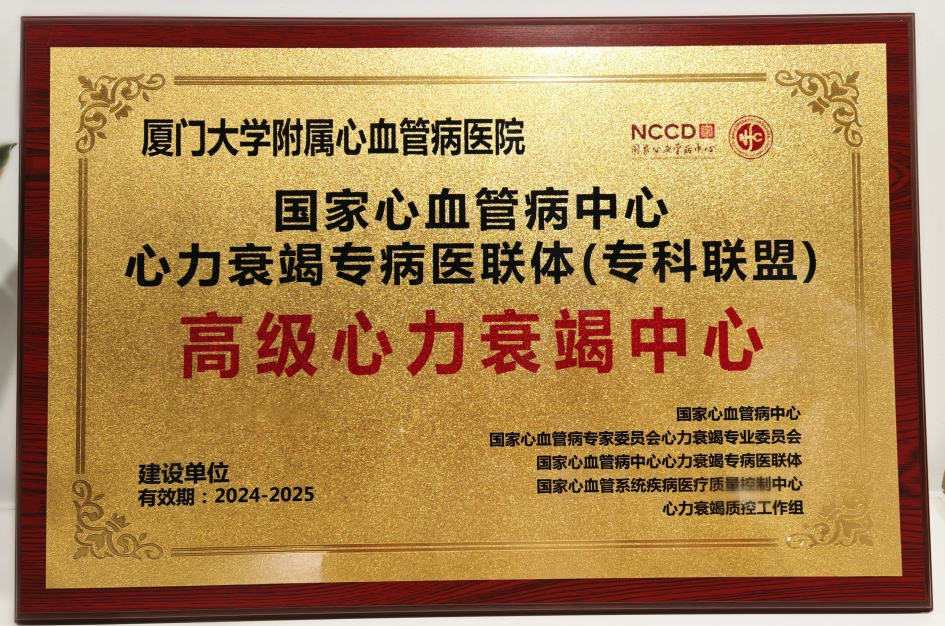 2024-12-19厦心医院获授全国首批高级心力衰竭中心项目建设单位 -