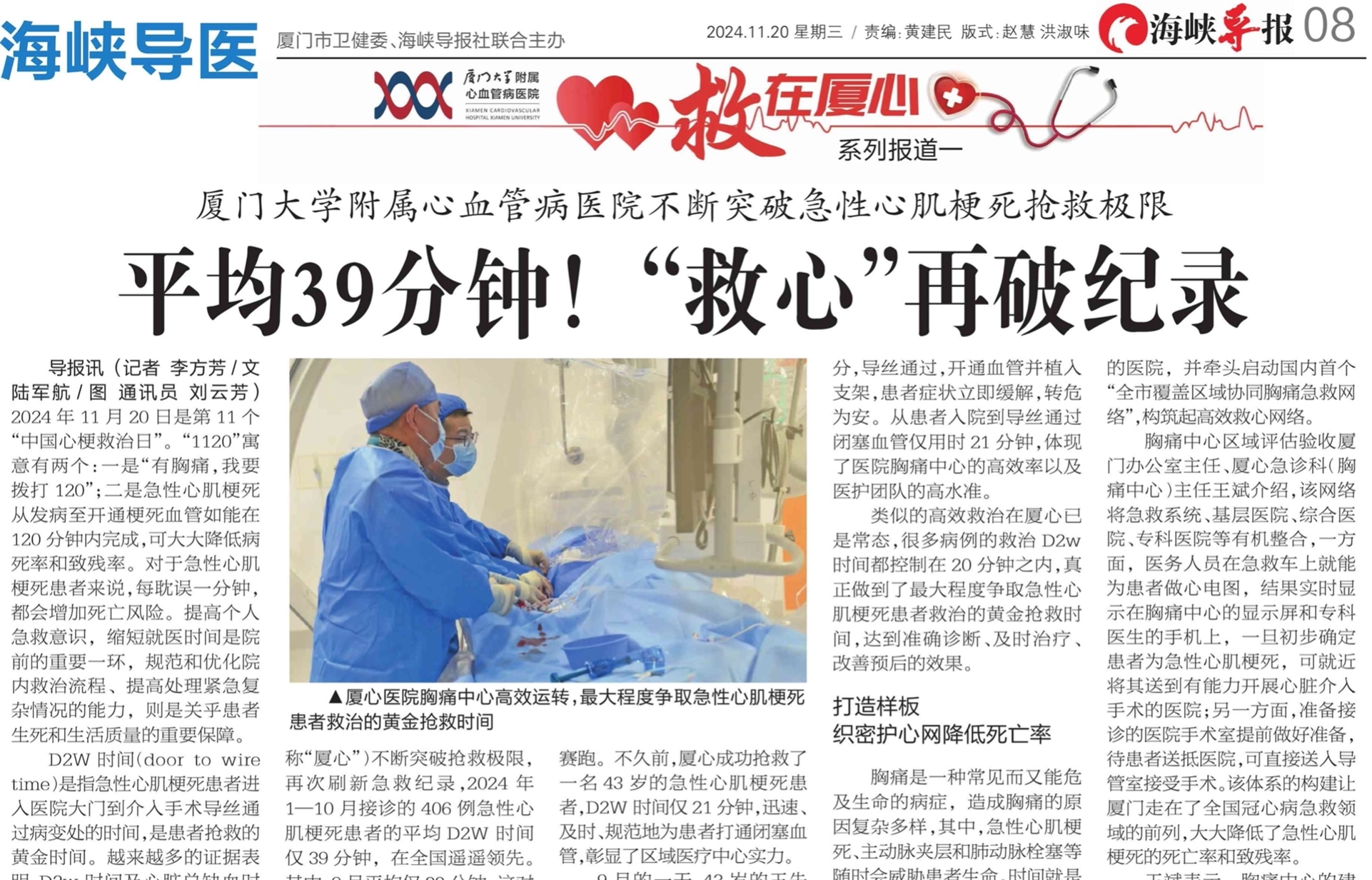 2024-11-20海峡导报|406例,平均39分钟,厦心再次刷新急救记录! -