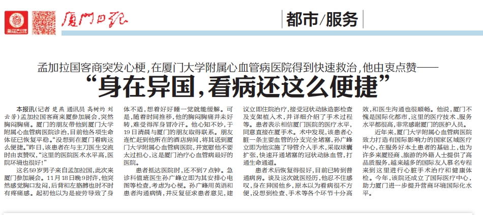 2024-11-22厦门日报 | 身在异国,看病还这么便捷” -