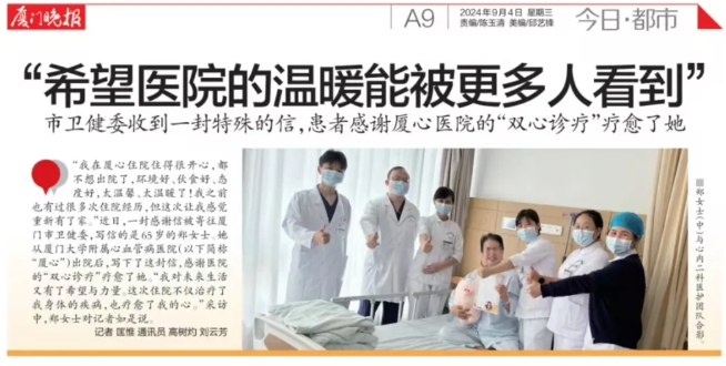 2025-09-24患友心声 | 一封感谢信发到了"福建省长信箱":七旬老人三渡“生死关”,家属点赞厦心医技仁心 -