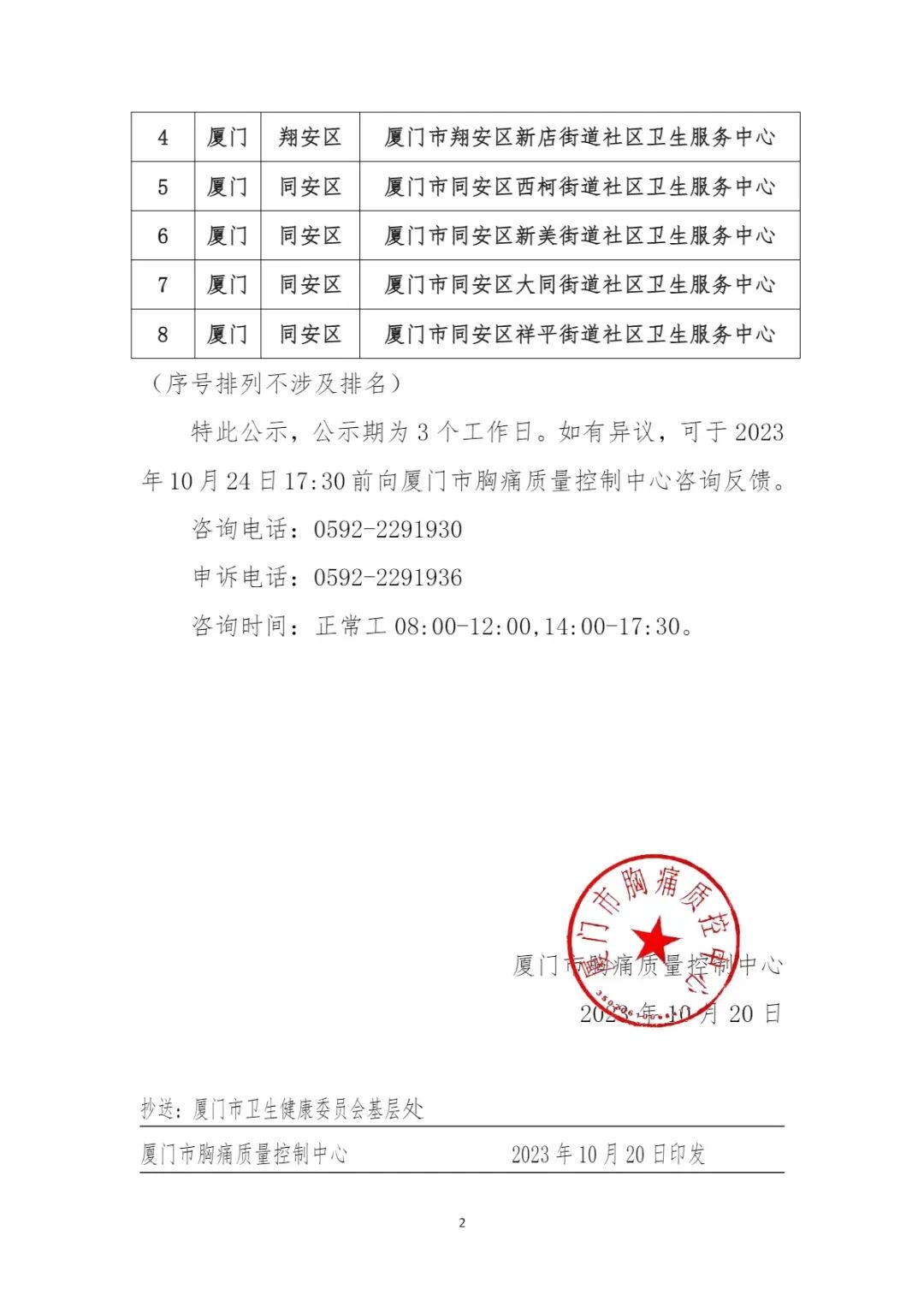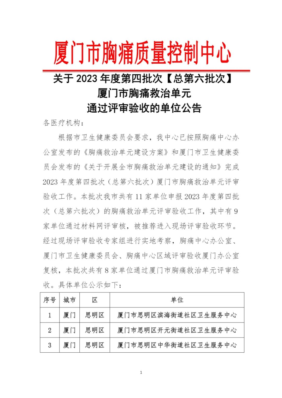 重要通知 | 关于2023年度第四批次(总第六批次)厦门市胸痛救治单元通过评审验收的单位公告
