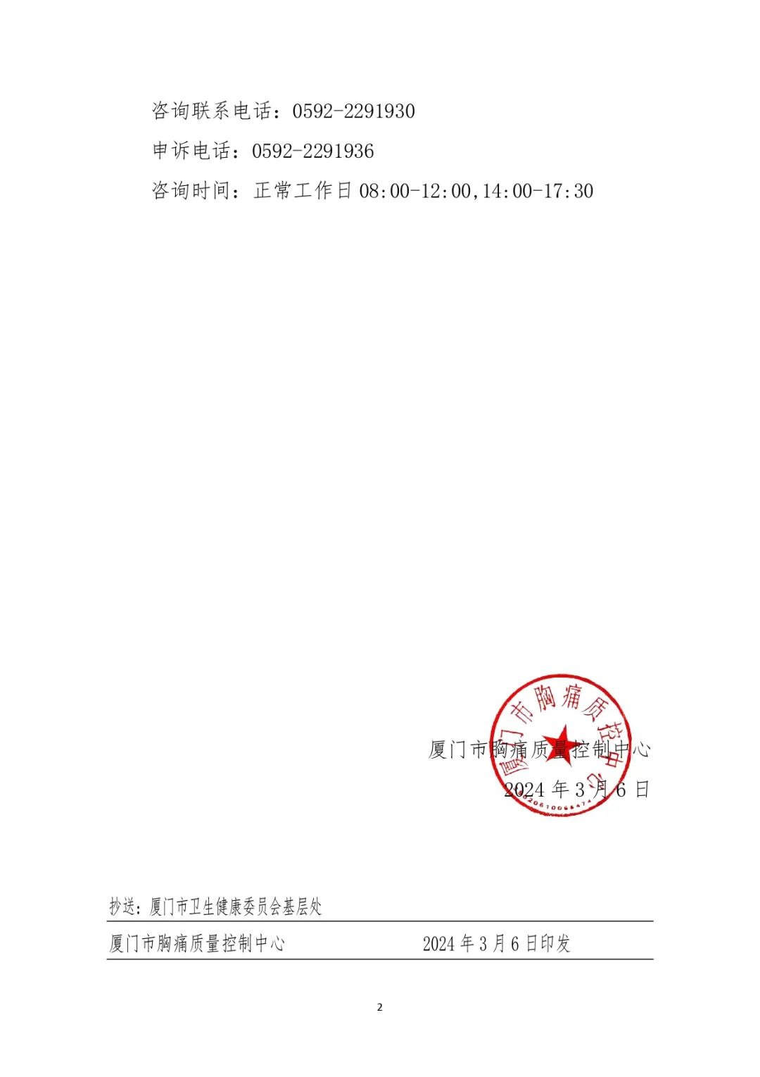 重要通知 | 关于2024年度第一批次(总第八批次)厦门市胸痛救治单元通过材料网评的单位公告