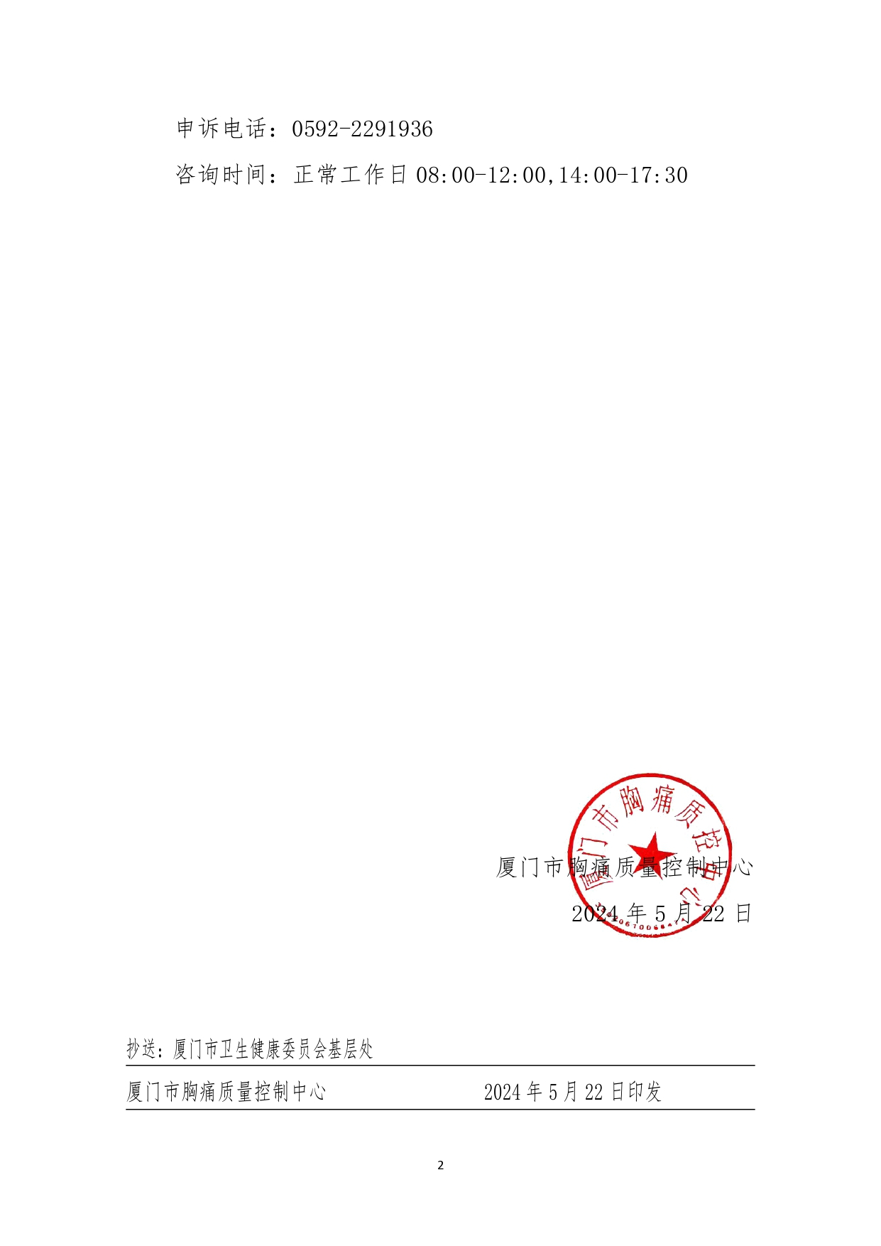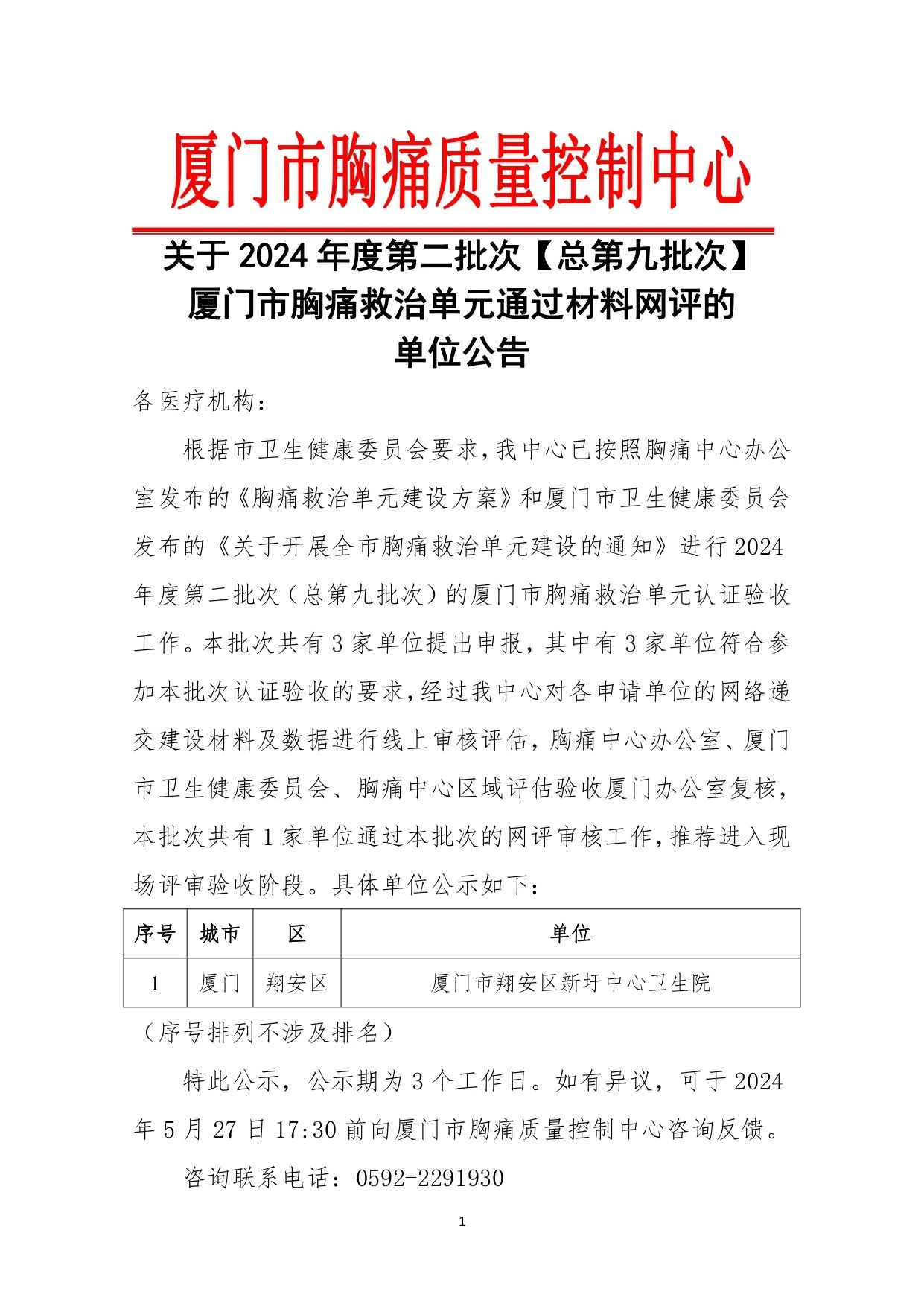 重要通知 | 关于2024年度第二批次(总第九批次)厦门市胸痛救治单元通过材料网评的单位公告