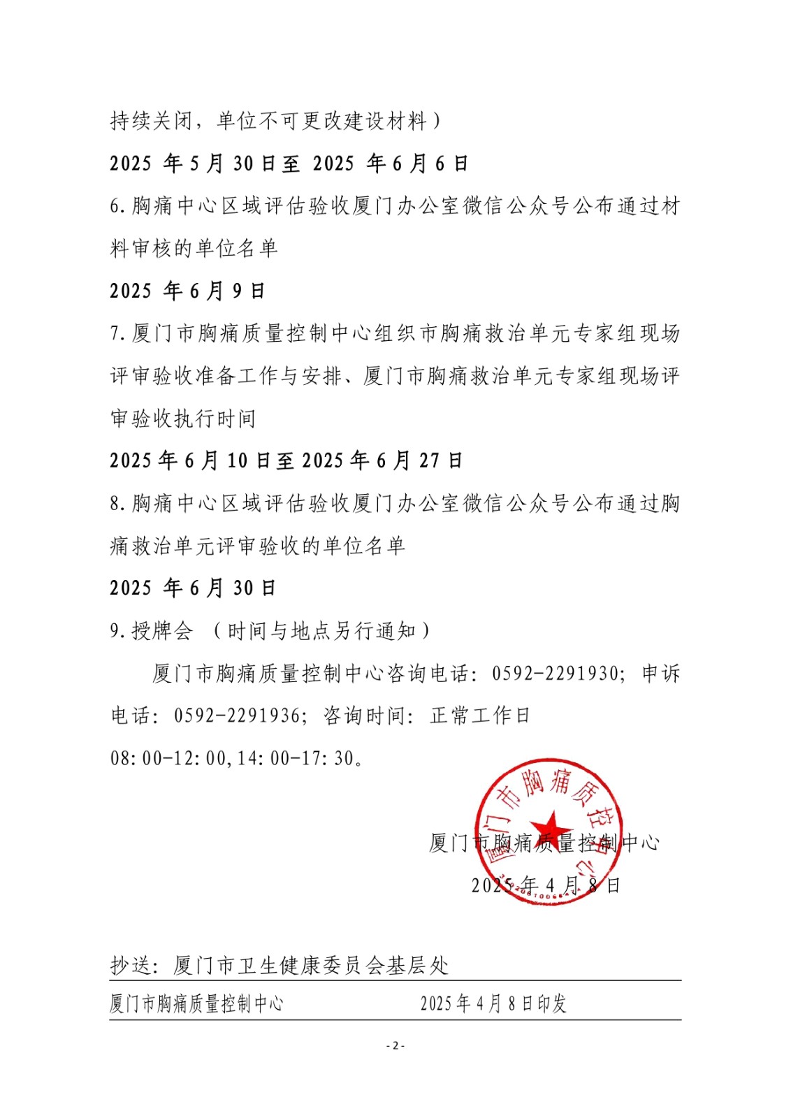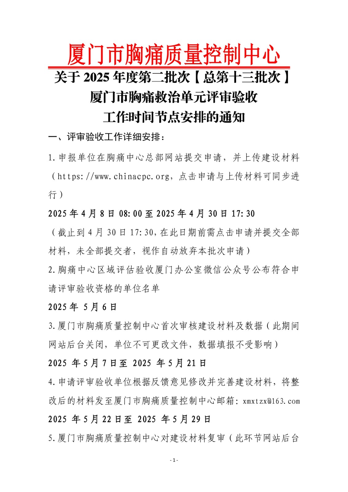 重要通知 | 关于2025年度第二批次(总第十三批次)厦门市胸痛救治单元评审验收工作时间节点安排的通知